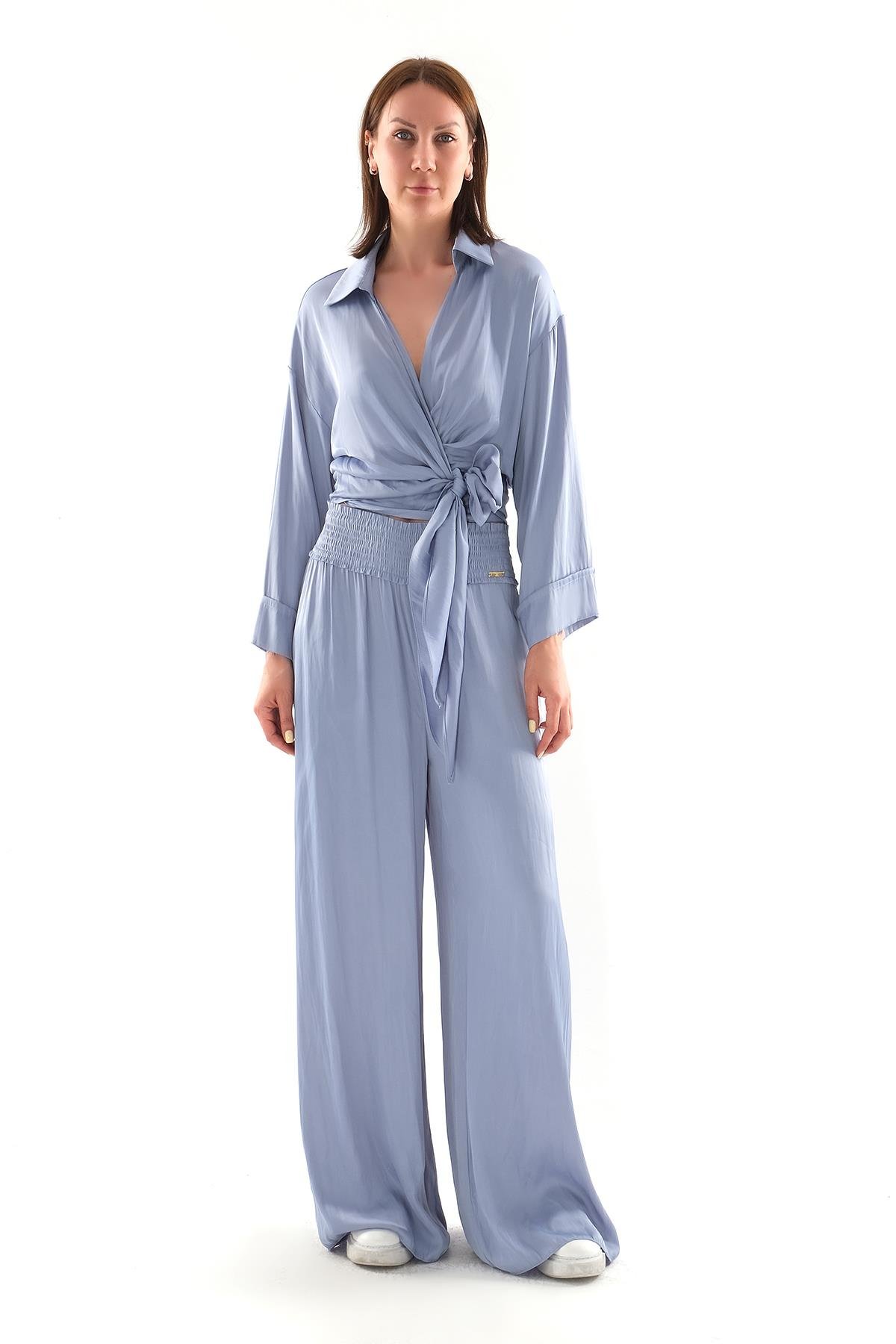 Saten Görünümlü - Gold Aksesuarlı - Bol Kesim - Rahat - Beli Lastikli Pantolon.