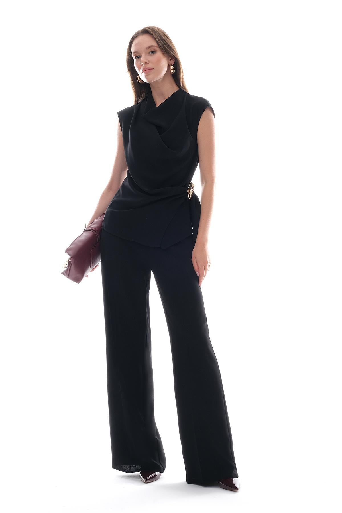 Gold Aksesuarlı-Yandan Gizli Fermuarlı-Bol Paça-Rahat Kesim Pantolon.
