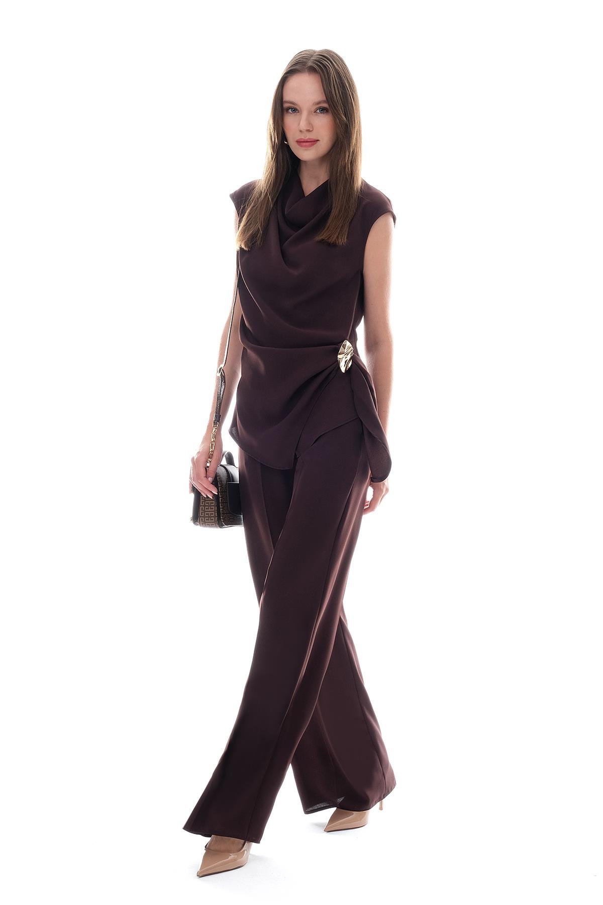 Gold Aksesuarlı-Yandan Gizli Fermuarlı-Bol Paça-Rahat Kesim Pantolon.