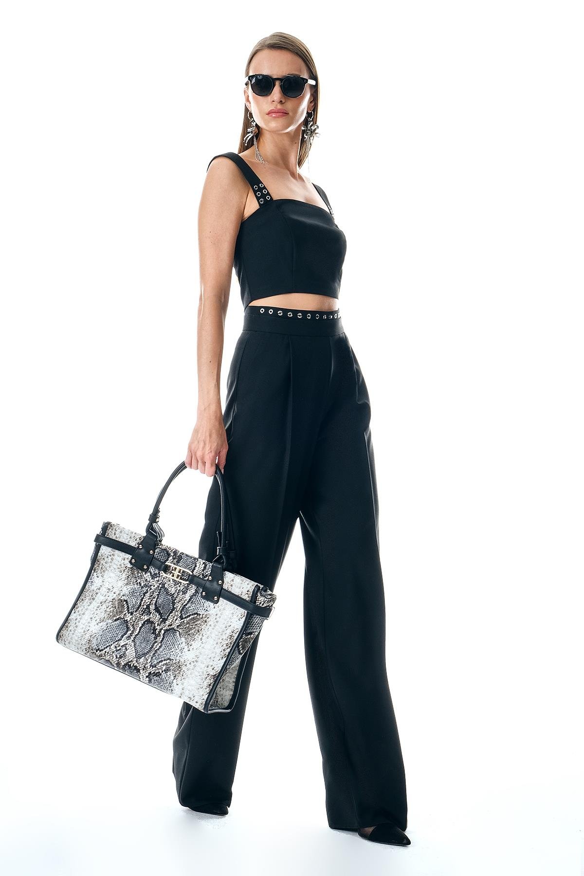 Kalın Askılı-Kuşgözü Detaylı Crop-Beli Çift Kemerli-Yandan Gizli Fermuarlı