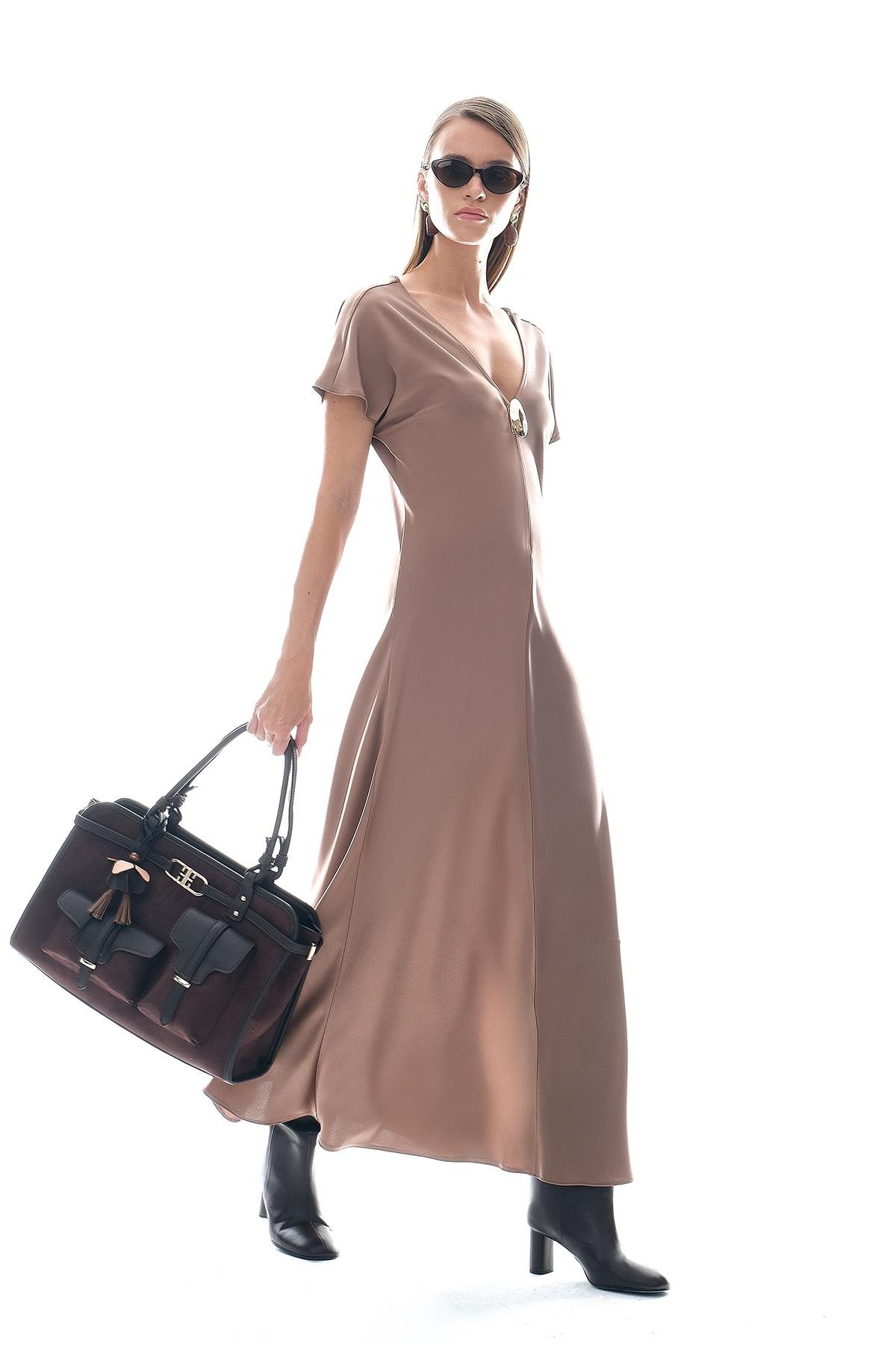 Midi Boy-Astarsız-V Yaka-Kısa Kollu-Parlak Dokulu